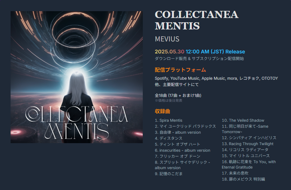 MEVIUSのAI音楽アルバム COLLECTANEA MENTIS 5/30 リリース決定!